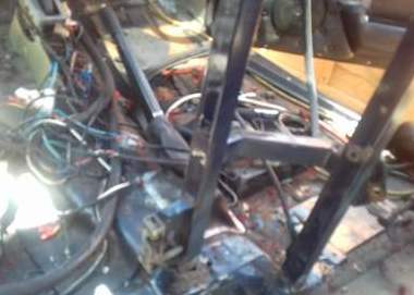 The covering panels were then reattached using where possible, the existing holes for rivets and screws. The fixings for the seat belts and tip up rear seats were made stronger than original using 5mm steel brackets welded in place. There is some wiring running through and under the frames,for the heaters and lights etc. |