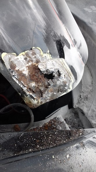 | This picture of rot round the heater vent on my old taxi shows another typical rust trap. | ![]() |