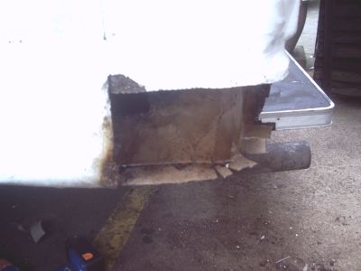 Both the rear quarter bumpers were just hanging on to rusted out brackets.Behind this tatty panel are a couple of short box sections going to the main vehicle chassis.These had also rotted out,and were easier to gain access to with the old rotted section of the bodywork removed