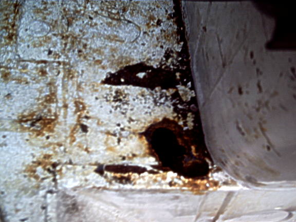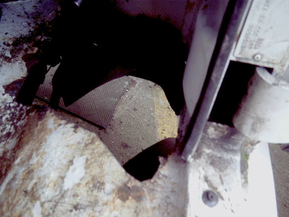 A big hole in the floor and wheel arch on the drivers side.Salt air and water running from the windscreen rubbers had combined to rot out the floor.