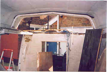 Part way through fixing the new roof.It was fitted with rivets and then bonded to the bodywork with fibreglass resin and matting