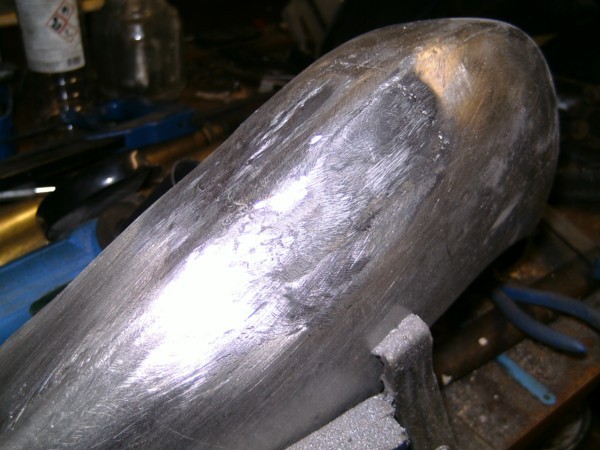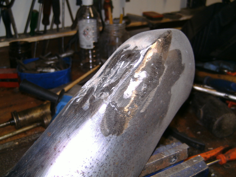 6 A new nut was welded on to the repaired bumper support and the bumper is ready for grinding and polishing for chroming.
