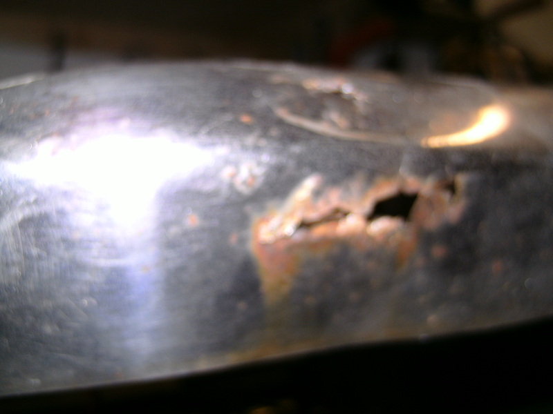 3.The other end,the hole is larger,the bracket is taken off ,and the rot cut back to sound metal then the hole is squared off.